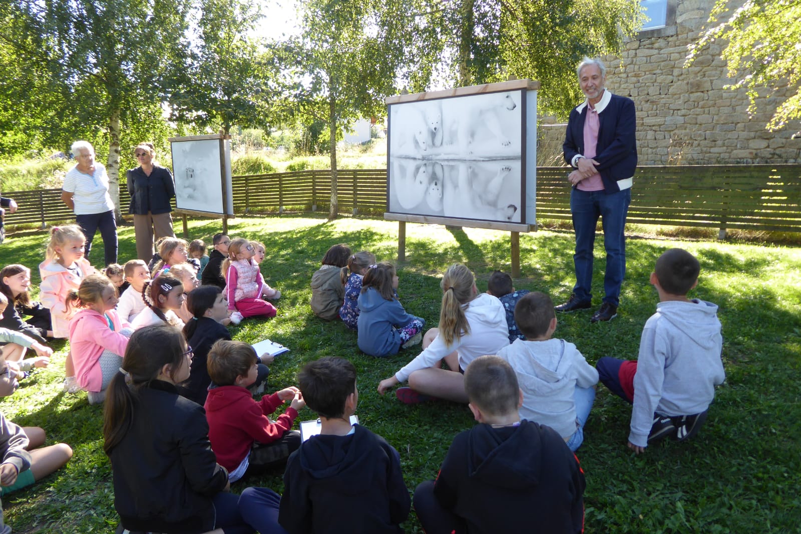 Les élèves ont été invités à visiter l’exposition ARKTOS à l’occasion du festival Phot’Aubrac, au jardin public d’Aumont-Aubrac. Ils ont pu échanger avec M. Kyriakos Kaziras qui a répondu avec bienveillance à leurs questions. Devant leur intérêt et leur curiosité, il leur a montré d’autres clichés réalisés au cours de ses nombreuses expéditions. Tous les élèves ont été admiratifs devant ses magnifiques photographies de l’artiste qui leur ont permis de découvrir au plus près ces animaux majestueux, mais en danger, et leur milieu de vie (l’Arctique et ses grands espaces blancs). Devant l’enthousiasme des élèves , les enseignantes leur ont proposé de visionner les nombreuses photographies animalières disponibles sur le site de Kyriakos Kaziras et de partager les émotions ressenties. L'équipe enseignante remercie la Mairie pour cette invitation et à l’artiste pour ce moment magique .