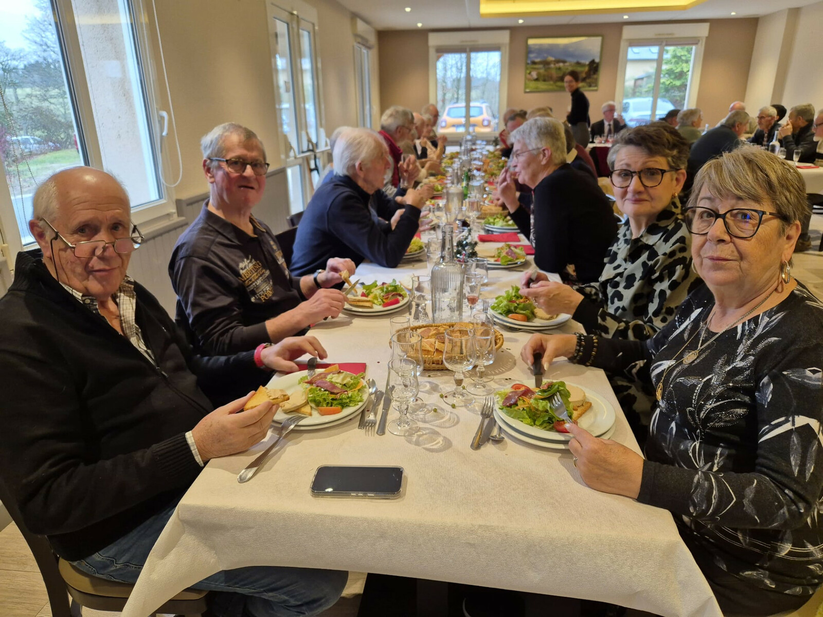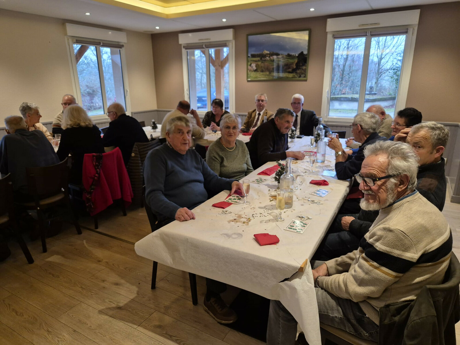 Ce dimanche à midi, plus d’une trentaine d’aînés se sont retrouvés au Bar Restaurant du Roc pour partager le traditionnel repas du Centre Communal d’Action Sociale. Accueillis chaleureusement par Jean-François, Cécile et Marlène, les convives ont pu profiter d’un moment gourmand et convivial, marqué par de nombreux échanges et une ambiance particulièrement agréable. À l’issue du repas, le Foyer Rural a organisé un loto doté de nombreux lots, permettant de prolonger l’après-midi dans la bonne humeur. Entre rires, discussions et suspense autour des cartons, cette rencontre a offert un beau moment de vie locale, apprécié de toutes et tous. Un dimanche simple et heureux, fidèle à l’esprit de notre commune.