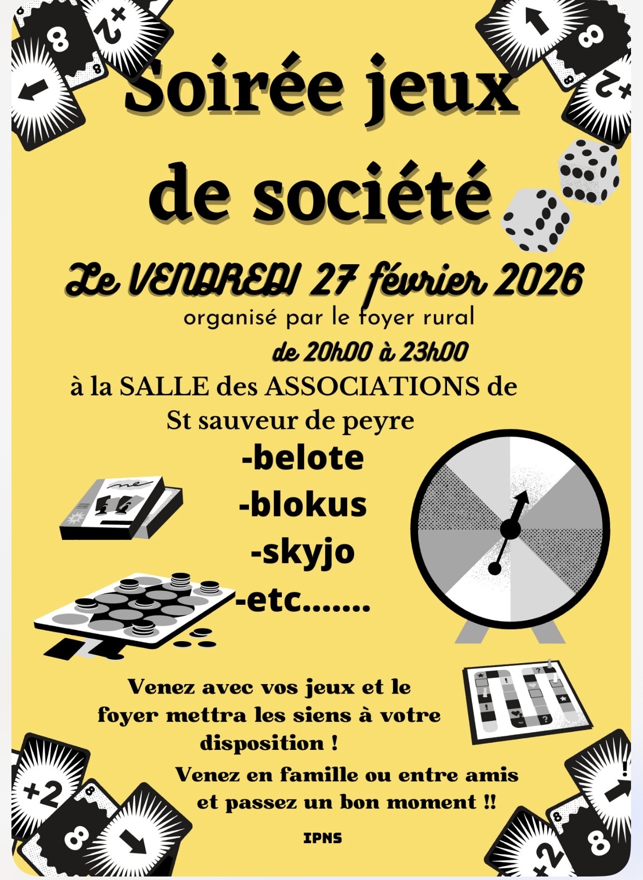 Enfin, pour terminer cette belle série d’animations, une soirée jeux sera également organisée le 28 février, l’occasion idéale de se retrouver en toute simplicité, en famille ou entre amis, autour de jeux pour tous les âges. Nous vous attendons nombreux pour ces rendez-vous qui font vivre notre commune.
