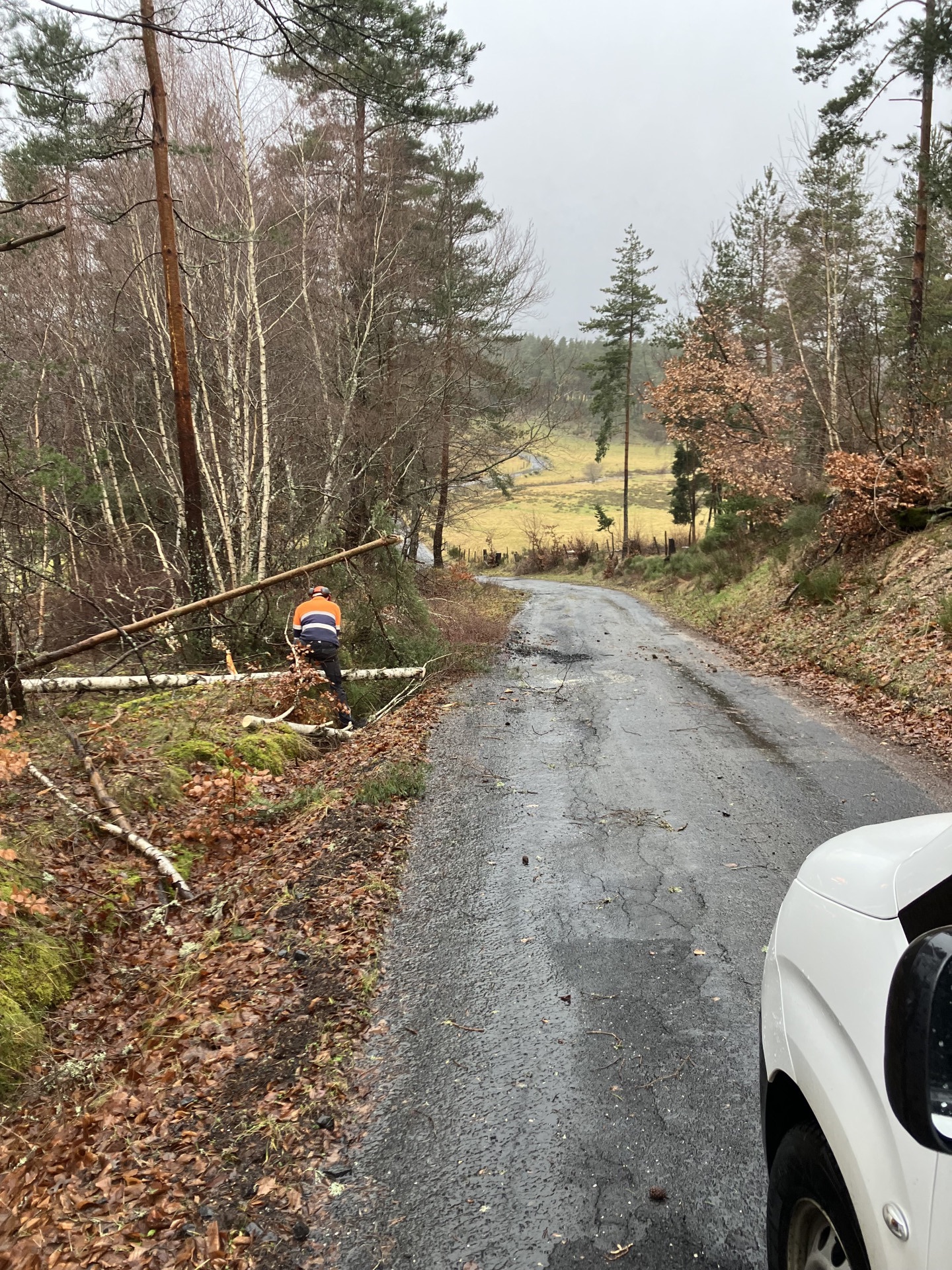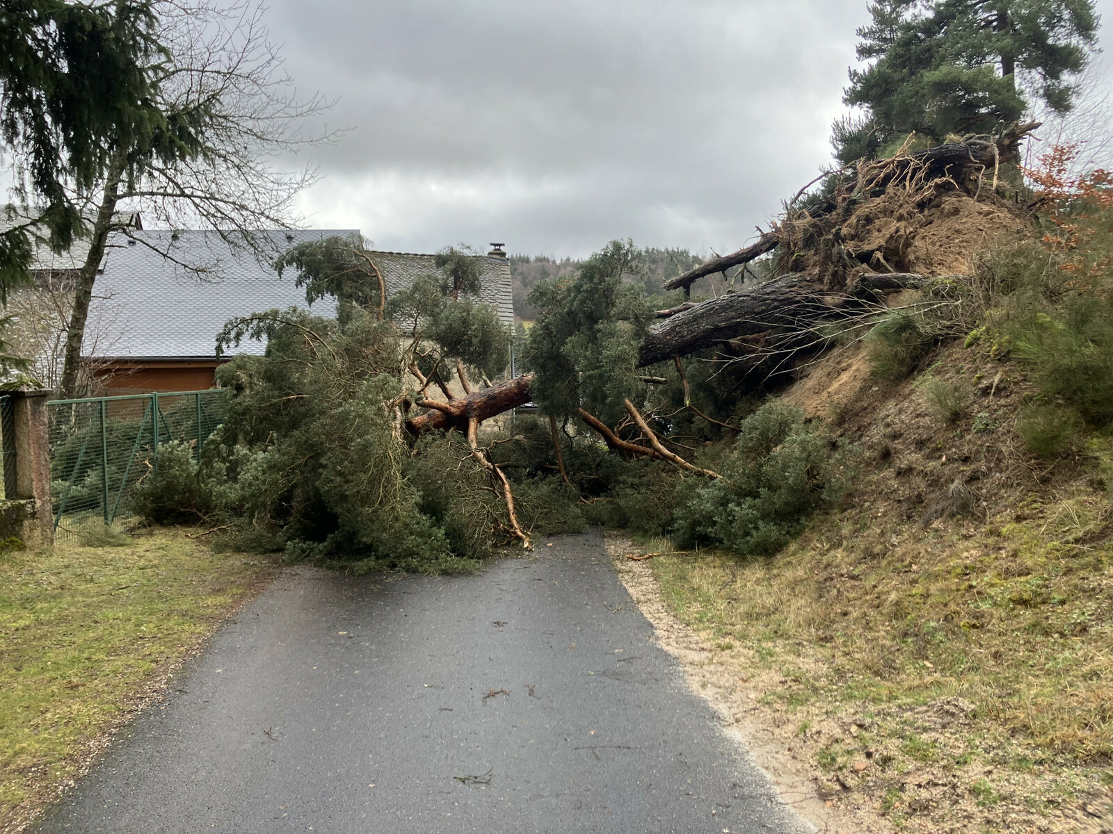 Quelques chutes d'arbres sur la commune avec un intervention sur la route de Chapchinies hier (Mercredi) ce jeudi Route de Couffinet et la plus spectaculaire est celle à proximité de Vimenent (Commune déléguée de la Chaze de Peyre).