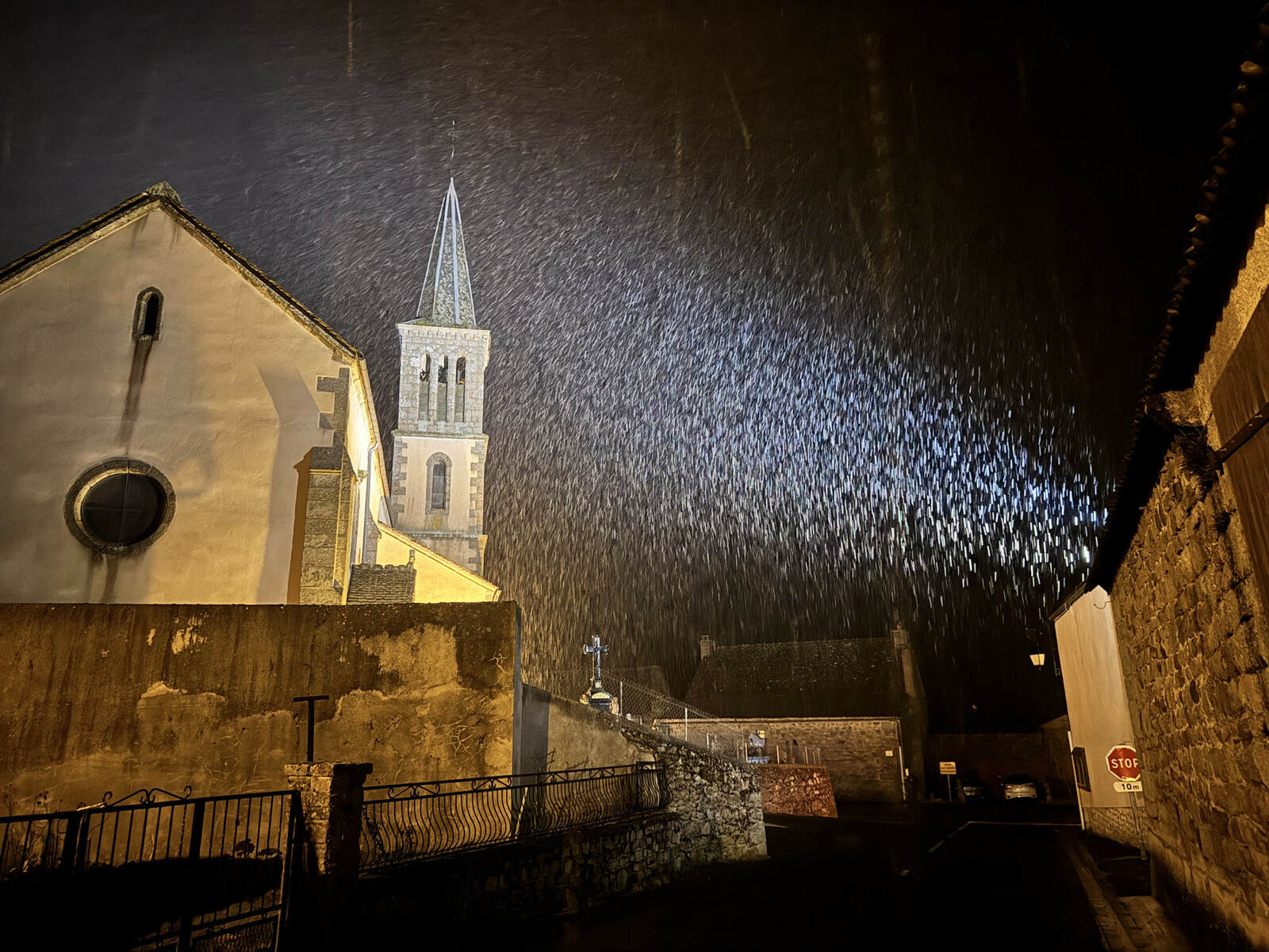 Dans une actualité communale au ralenti quelques infos avec hier (mercredi) un poids lourd en panne après une défaillance technique et une descente de la Randèche très glissante. En fin de journée la neige a fait son retour comme en témoigne ce cliché réalisé juste avant l'extinction de l'éclairage public à 23 h.